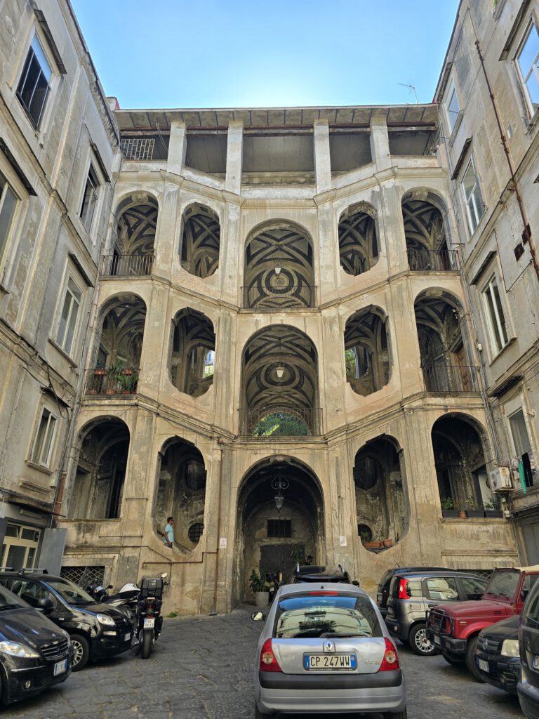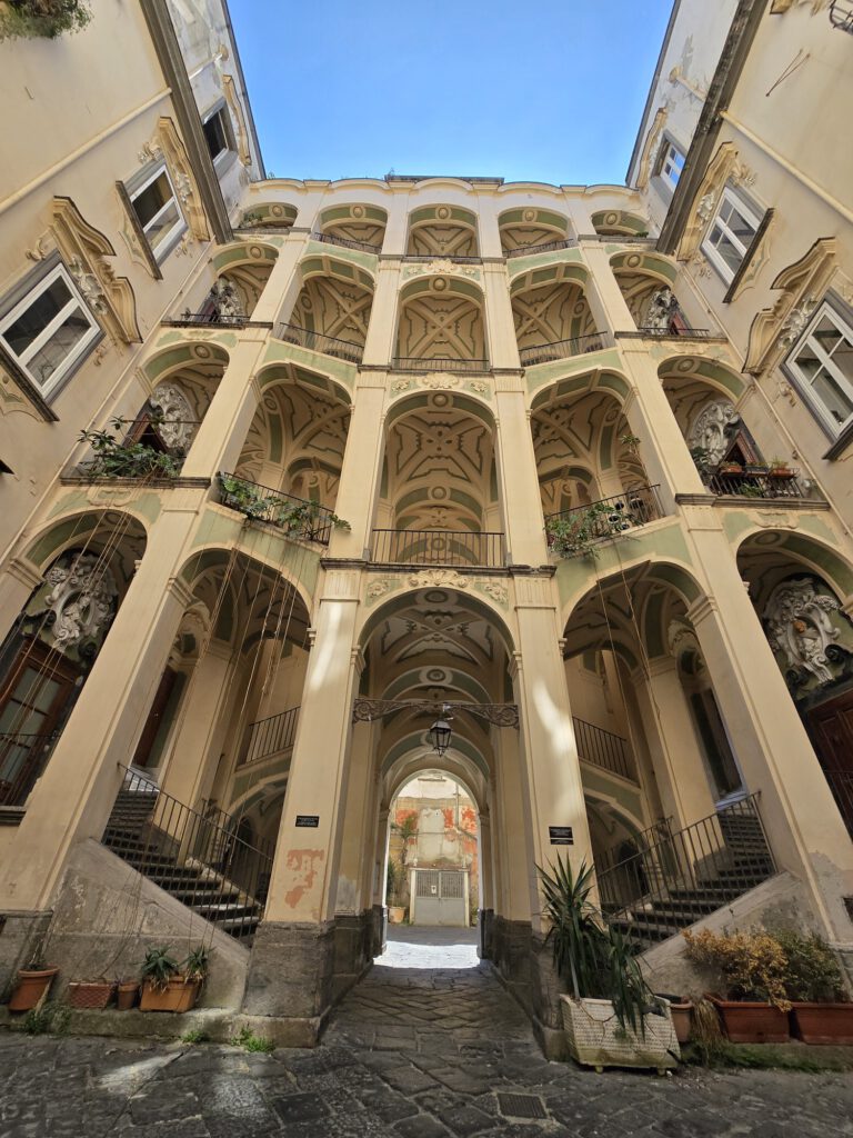 Na de lunch liepen we verder de wijk in en passeerden we Palazzo Sanfelice, nog zo’n bijzonder barok gebouw van architect Ferdinando Sanfelice. Het paleis dateert uit de jaren 1720 en staat net als Palazzo dello Spagnolo, bekend om zijn theatrale trapconstructie en de typische Napolitaanse binnenplaatsstructuur.