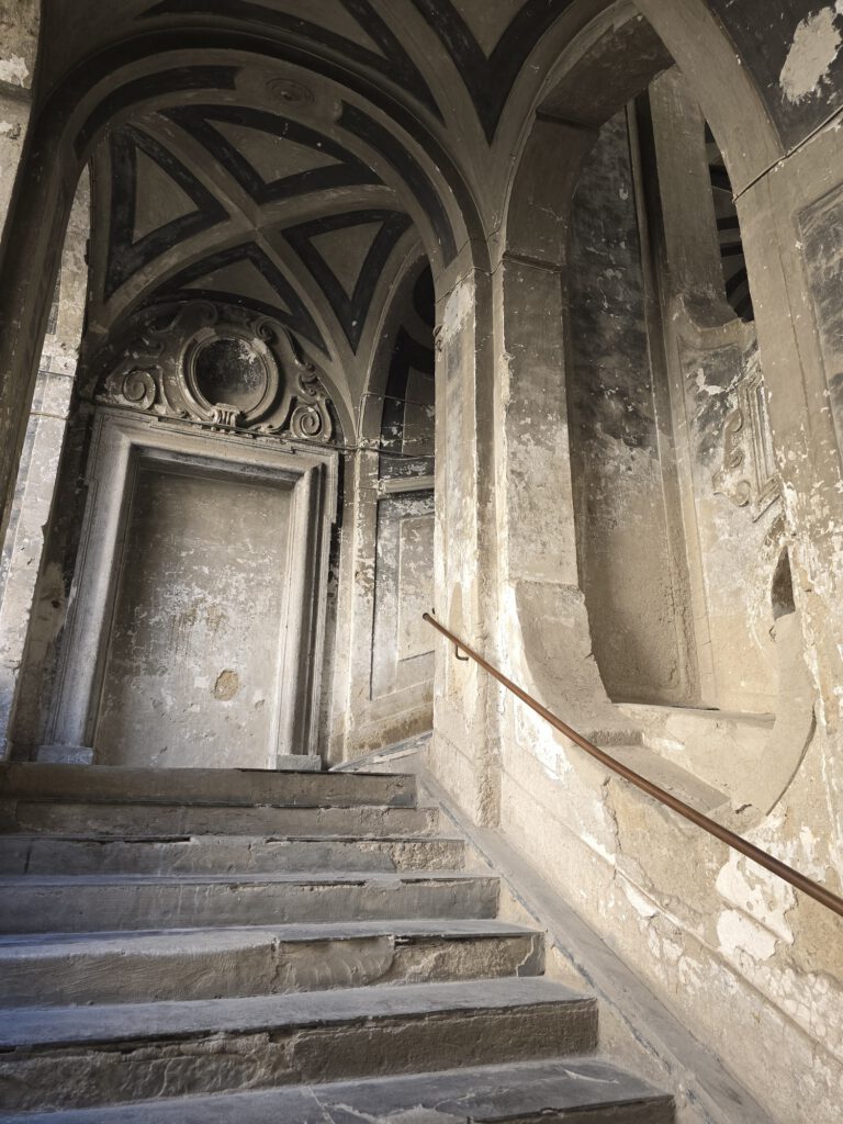 Terwijl we Rione Sanità inliepen, kwamen we langs het indrukwekkende Palazzo dello Spagnolo. Dit achttiende-eeuwse paleis werd vanaf 1738 gebouwd en is vooral beroemd om zijn spectaculaire dubbele trap, een schoolvoorbeeld van Napolitaanse barok en rococo.
