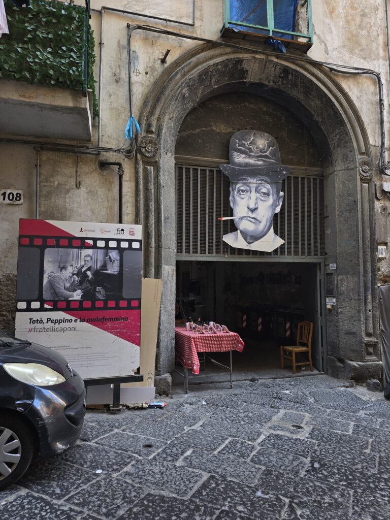 Op de terugweg passeren we ook het geboortehuis van Totò, een van de meest geliefde figuren uit Napels. Totò, geboren als Antonio De Curtis op 15 februari 1898, zag het levenslicht in Rione Sanità en woonde aan Via Santa Maria Antesaecula 109 voordat hij later met zijn familie naar Rome verhuisde. Hij groeide uit tot een legendarische komiek, acteur, dichter en icoon van de Napolitaanse cultuur. Zijn band met Rione Sanità bleef altijd sterk; volgens lokale verhalen keerde hij zelfs regelmatig terug naar de wijk om arme families anoniem te helpen. Die verbondenheid met zijn buurt was zo groot dat er na zijn overlijden niet alleen in Rome en Napels een uitvaart plaatsvond, maar ook nog een derde afscheid in zijn geliefde Rione Sanità.