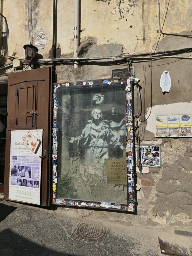 Onderweg kwamen we ook langs de beroemde Madonna con la Pistola, het werk dat algemeen wordt gezien als Banksy’s bekendste en feitelijk enige bewaard gebleven werk in Italië. De Madonna met het pistool is klein, maar maakt veel indruk: een beeld dat tegelijk rauw, ironisch en bijna poëtisch aanvoelt.