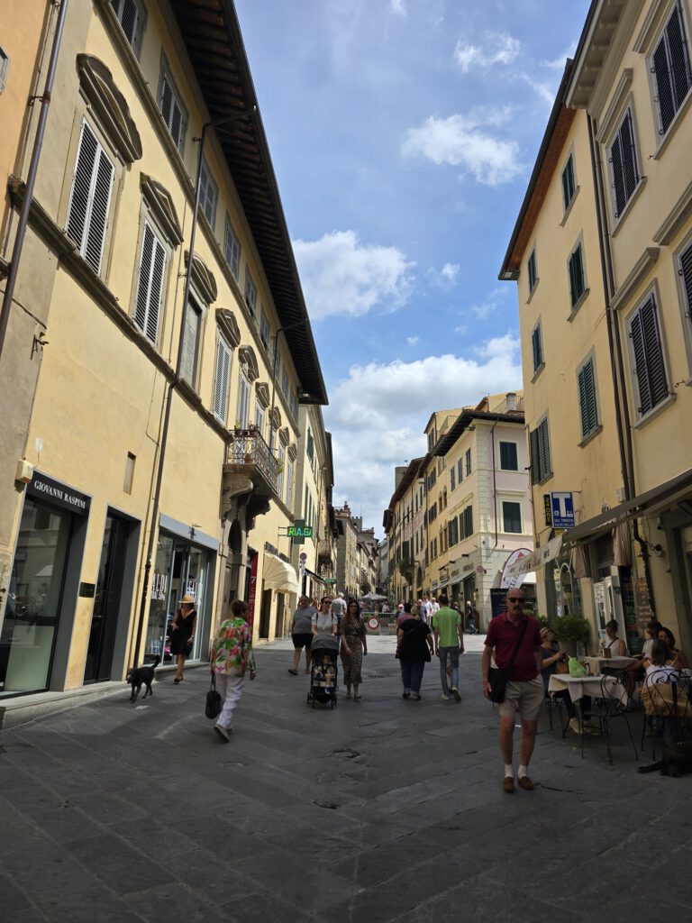 Na ons bezoek wandelden we verder door de sfeervolle straatjes van Arezzo richting Palazzo Pretorio. Ook dit is weer zo’n karakteristiek gebouw dat perfect past bij het historische karakter van de stad. Terwijl we door het centrum liepen, merkten we opnieuw hoe fijn Arezzo is om te voet te ontdekken. Achter iedere hoek lijkt weer een mooi straatje, een leuk plein of een bijzonder gebouw tevoorschijn te komen.