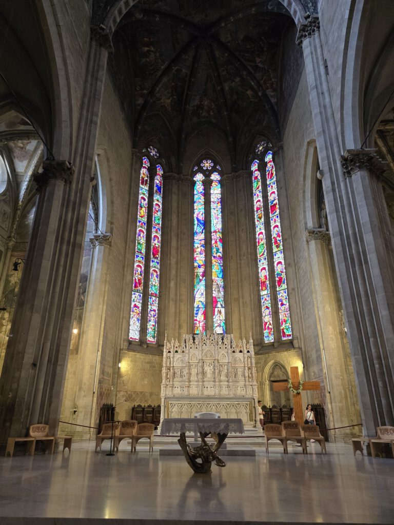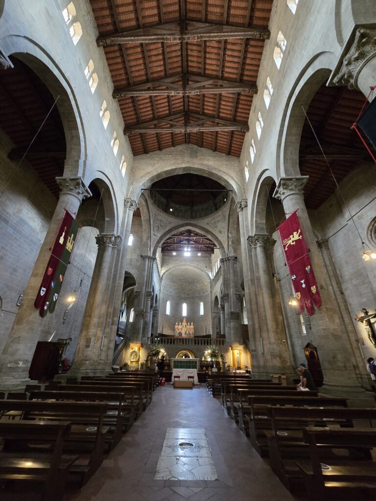 Tijdens onze wandeling brachten we ook een bezoek aan de Basilica di San Francesco. Deze basiliek is een van de bekendste bezienswaardigheden van Arezzo en zeker de moeite waard om even binnen te stappen. De kerk heeft een rustige, sobere uitstraling, maar is vooral bijzonder vanwege haar kunst en geschiedenis. Het is zo’n plek waar je even automatisch wat langzamer gaat lopen en de sfeer in je opneemt.