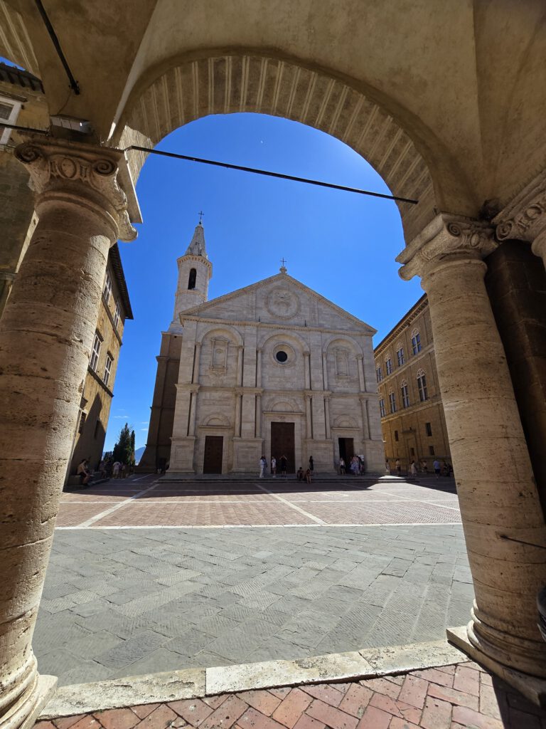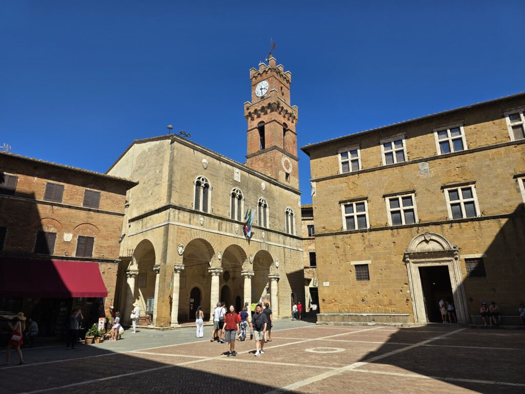Via het centrale plein, Piazza Pio II, lopen we naar het Palazzo Comunale, het historische stadhuis van Pienza. Het gebouw dateert uit de Renaissance en heeft een prachtige façade die de rijke geschiedenis van het stadje weerspiegelt. Op hetzelfde plein staat ook de Duomo di Pienza, een indrukwekkende kathedraal gewijd aan de Assumptie van Maria. We nemen een kijkje binnen en bewonderen de sobere maar elegante interieurdecoratie en de bijzondere kunstwerken die hier te vinden zijn.