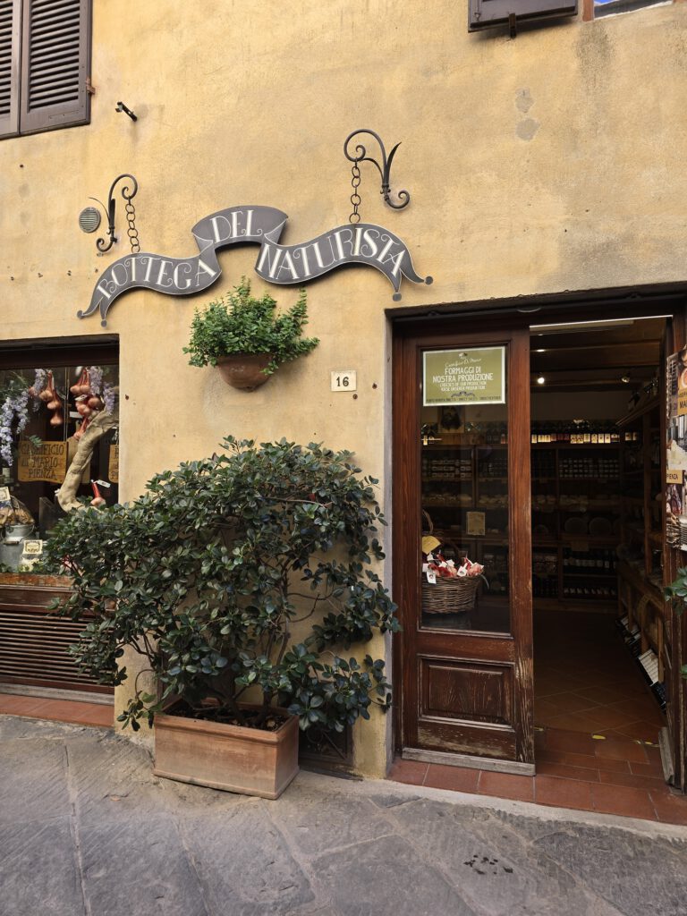 Daarna lopen we verder via Corso Rossellino, de hoofdstraat van Pienza. Onderweg bezoeken we La Bottega Del Naturista, een charmant winkeltje waar diverse lokale kazen, olijfolie en andere delicatessen worden verkocht. Het is een genot om de smaken en geuren van Toscane hier te ontdekken.