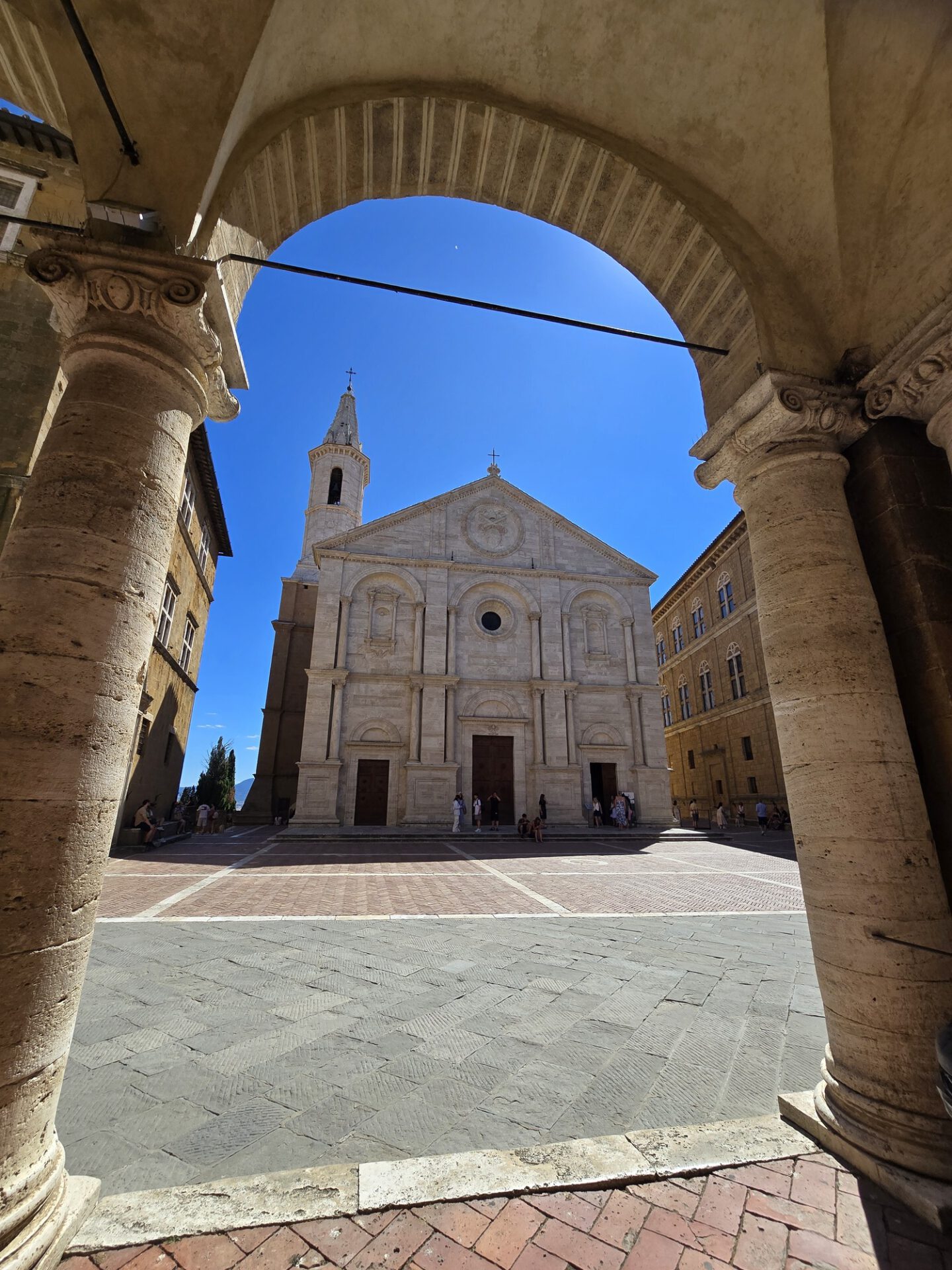 Via het centrale plein, Piazza Pio II, lopen we naar het Palazzo Comunale, het historische stadhuis van Pienza. Het gebouw dateert uit de Renaissance en heeft een prachtige façade die de rijke geschiedenis van het stadje weerspiegelt. Op hetzelfde plein staat ook de Duomo di Pienza, een indrukwekkende kathedraal gewijd aan de Assumptie van Maria. We nemen een kijkje binnen en bewonderen de sobere maar elegante interieurdecoratie en de bijzondere kunstwerken die hier te vinden zijn.