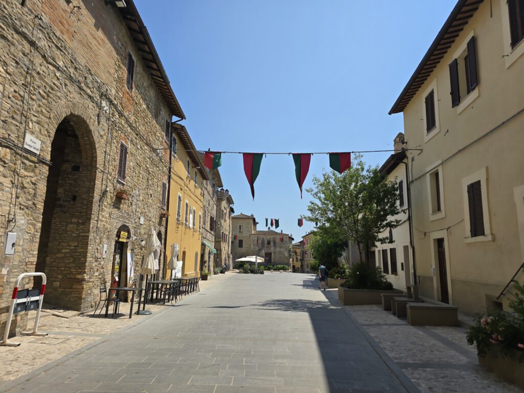 Tijdens onze wandeling kwamen we langs Porta Cannara, een van de historische toegangspoorten van het stadje. Bevagna wordt nog altijd omringd door oude muren en bewaart verschillende stadspoorten, wat meteen bijdraagt aan die typisch middeleeuwse sfeer.