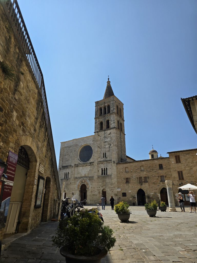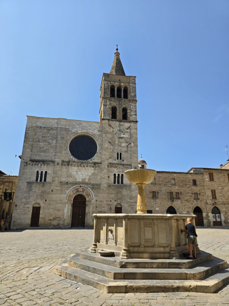 Aan het plein bezochten we onder andere de Chiesa di San Silvestro en de Chiesa Parrocchiale di San Michele Arcangelo. San Silvestro is een bijzonder mooi voorbeeld van de Umbrische romaanse bouwkunst en dateert uit 1195. De kerk is sober, krachtig en indrukwekkend in al haar eenvoud.