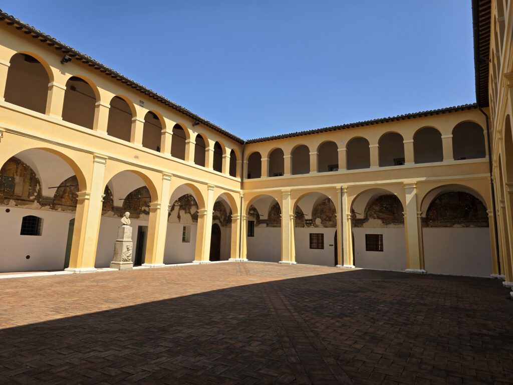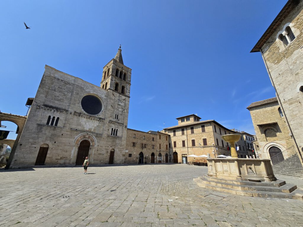 Van daaruit liepen we verder naar Piazza Filippo Silvestri, zonder twijfel het kloppende hart van Bevagna. Dit plein kreeg zijn huidige vorm in de 12e en 13e eeuw en geldt als een van de mooiste en meest karaktervolle pleinen van Umbrië. Rondom het plein staan verschillende religieuze en civiele monumenten dicht bij elkaar, waardoor het echt het historische middelpunt van het dorp vormt.